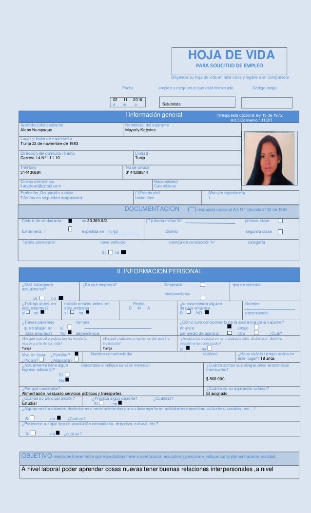 Hoja De Vida En Espanol